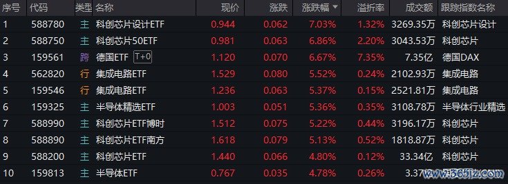就像今天,上午收盘时,消费电子ETF还霸占涨幅榜;下午芯片股集体异动后,半导体、集成电路、科创芯片等主题ETF就“不讲道理”了。