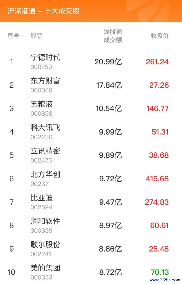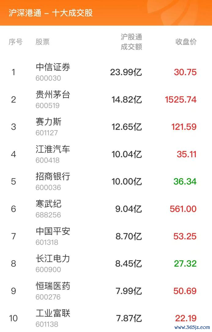 交易所公布的当日沪深港通十大成交股显示,线上配资中信证券、贵州茅台、赛力斯位列沪股通前三,成交额分别为23.99、14.82、12.65亿元;宁德时代、东方财富、五粮液位列深股通前三,前三配资公司成交额分别为20.99、17.84、10.54亿元。
