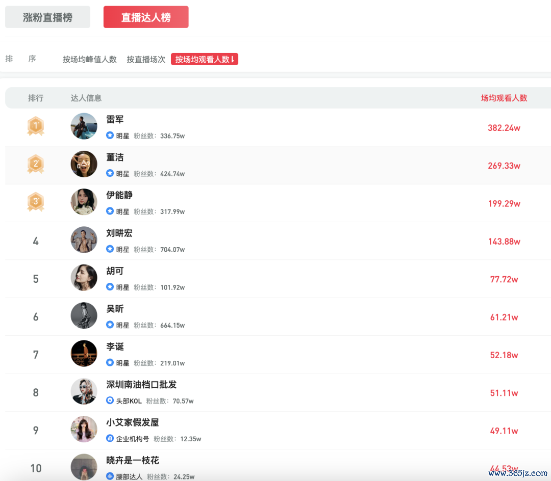 从格局来看,小红书头部主播中明星名人依旧占据高位。12月直播达人榜(以场均观看人数计)前十里,明星名人等占了八席,还有两位是带货白牌服饰和假发的主播。